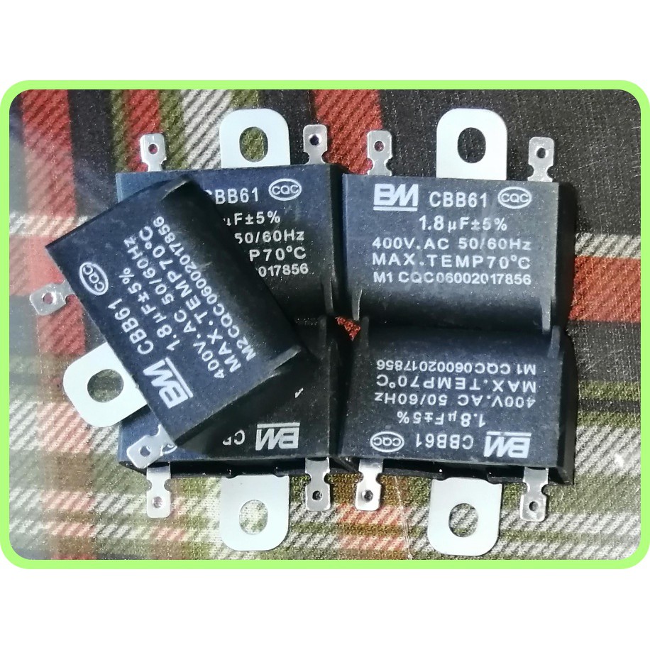 Bộ sản phẩm gồm 4 tụ điện. Khách cần cùng loại xin chat với shop. * Tụ điện dùng thay cho quạt điện hiệu BM * Điện dung: 1.5mF; 1.8mF; 2.0mF +/- 5% * 400VAC - 450VAC * Nhiệt độ làm việc tối đa 70 độ C * Không bảo hành.