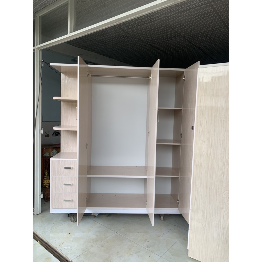 Tủ nhựa 4 cánh 2 ngăn kéo ngang 1m64 cao 1m84 , nội thất gia đình