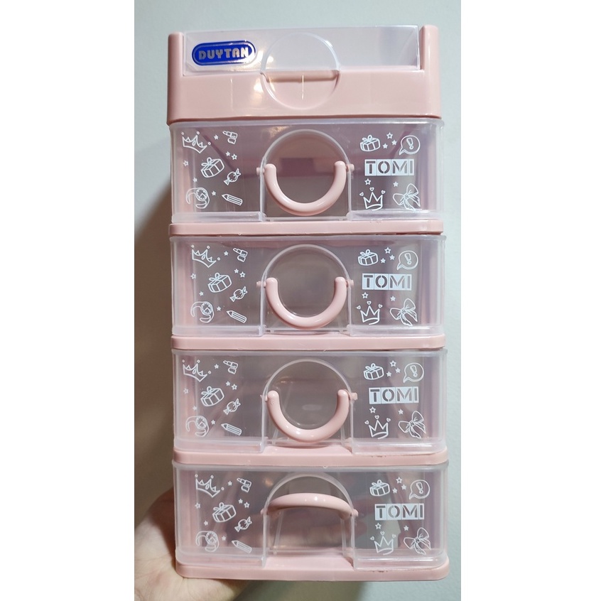 CHÚ Ý : TỦ KHÔNG ĐỰNG QUẦN ÁO QUÝ KHÁCH CHỌN MÀU VUI LÒNG GHI CHÚ TRÊN ĐƠN HÀNG Mô tả sản phẩm Tủ nhựa Duy Tân TOMI Mini 5 tầng Cam kết cung cấp hàng chính hãng Duy Tân Cam kết 1 đổi 1 trong vòng 7 ngày ( Nếu sản phẩm bị lỗi) BẢO HÀNH 10 NĂM ( Nếu do lỗi nhà sản xuất ) Kích thước 5 Tầng : rộng 16cm x sâu 19cm x cao 32cm 4 Tầng : rộng 16cm x sâu 19cm x cao 25cm Màu Sắc : Dương , Hồng , Lá , Xám Hàng Việt Nam Chất lượng cao Nguyên liệu : Nhựa PP chính phẩm không độc hại Công dụng: Đựng thuốc, chìa khóa, đồ trang sức, vật dụng nhỏ, vật dụng gia đình, văn phòng.... Tủ Nhựa Duy Tân TOMI Mini được thiết kế gọn nhẹ gồm tầng trên cùng có nắp đậy và các tầng bên dưới là ngăn kéo.Họa tiết đáng yêu và màu sắc trang nhã sẽ giúp bạn cất giữ và bảo quản những vật dụng nhỏ như chìa khóa, dụng cụ y tế, phụ kiện… một cách gọn gàng, tránh việc thất lạc. Sản phẩm được làm từ nhựa cao cấp, có độ bền cao cùng khả năng chịu lực tốt để bạn sử dụng lâu dài. Thiết kế tiện lợi, dễ sử dụng Tủ với thiết kế gọn nhẹ và chắc chắn, bạn có thể tháo lắp các ngăn kéo dễ dàng để sử dụng hoặc di chuyển tủ sang vị trí mong muốn. Chất liệu an toàn, bền bỉ Tủ được làm từ nhựa PP không độc hại, không gây mùi khó chịu trong quá trình sử dụng, đảm bảo an toàn cho sức khỏe người sử dụng. Chất liệu nhựa này mang đến độ bền cao và khả năng chịu lực tốt, không bị cong vênh hoặc biến dạng dưới tác động của thời tiết để bạn có thể sử dụng lâu dài, bền bỉ mà không cần đổi mới gây tốn kém. Thích hợp với mọi không gian Sản phẩm có thiết kế trang nhã, họa tiết đáng yêu cùng nhiều màu sắc để bạn lựa chọn tủ phù hợp với không gian nhà bạn. Tủ có thể đặt ở đầu giường, nóc tủ, bàn làm việc, bàn trang điểm... mà không tốn nhiều diện tích Ngoài ra, tủ được thiết kế bế mặt trơn láng, hạn chế bám bẩn và bạn có thể lau chùi dễ dàng để vệ sinh sản phẩm một cách nhanh chóng, tiện lợi. Hướng dẫn sử dụng - Chỉ nên sử dụng để đựng đồ bình thường, không sử dụng đựng hóa chất hay chất dễ cháy - Tránh va đập mạnh và tránh ánh nắng trực tiếp - Tránh dùng những vật sắc nhọn ma sát trực tiếp vào tủ Thường xuyên vệ sinh tủ theo định kỳ để tủ luôn mới và sạch sẽ #TuNhua #TuNhuaDuyTan #TuTomiNho3Ngan #TuNhuaMini #TuTomi #TuDungDoTrangDiem #TuMini #TuTomiS #TuYTe #TuNho #TuDuyTan #TuDaNang