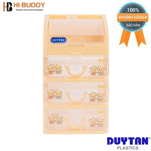 Quý Khách yên tâm 100% khi đặt hàng bên shop nha - Sẽ có nhân viên gọi điện lại xác nhận màu sắc theo mong muốn - Nếu cần thay đổi hoặc yêu cầu gấp thì liên hệ : 0989 125 130 🐱🐉🐱🐉Thông số kỹ thuật: - Thương hiệu: Duy Tân Chính hãng. - Sản xuất tại Việt Nam - Mã Sản phẩm: No.219/4 - Kích thước: 15.5 x 19 x 25 cm - Chất liệu: Nhựa PP/ABS - Màu sắc: Xanh Lá, Hồng, Cam, Trắng, Vàng 🐱🐉🐱🐉Mô tả sản phẩm: - Thiết kế tiện lợi, dễ sử dụng - Tủ với thiết kế gọn nhẹ và chắc chắn, bạn có thể tháo lắp các ngăn kéo dễ dàng để sử dụng hoặc di chuyển tủ sang vị trí mong muốn. - Tủ có 3 ngăn kéo và 1 ngăn phụ có nắp đậy phía trên, tiện lợi để bạn lưu trữ chìa khóa, dụng cụ y tế, văn phòng phẩm hoặc các phụ kiện nhỏ, trang sức… một cách gọn gàng, ngăn nắp và tránh thất lạc. - Chất liệu an toàn, bền bỉ - Chất liệu nhựa này mang đến độ bền cao và khả năng chịu lực tốt, không bị cong vênh hoặc biến dạng dưới tác động của thời tiết để bạn có thể sử dụng lâu dài, bền bỉ mà không cần đổi mới gây tốn kém. - Thích hợp với mọi không gian - Sản phẩm có thiết kế trang nhã, họa tiết đáng yêu cùng nhiều màu sắc để bạn lựa chọn tủ phù hợp với không gian nhà bạn. - Tủ có thể đặt trên bàn làm việc, bàn trang điểm hoặc phòng ngủ… mà không tốn nhiều diện tích. - Ngoài ra, tủ được thiết kế bế mặt trơn láng, hạn chế bám bẩn và bạn có thể lau chùi dễ dàng để vệ sinh sản phẩm một cách nhanh chóng, tiện lợi. 🐱🐉🐱🐉Địa chỉ các chi nhánh của chúng tôi : CN1 : 208/65 Đường Số 5, Bình Hưng Hòa, Bình Tân 0989 125 130 CN2 : 222 Lê Sát, P.Tân Quý, Q.Tân Phú, TP.HCM (*) HiBuShop cam kết phân phối tất cả các sản phẩm DUY TÂN Chính Hãng - Uy Tín - Chất Lượng !!! #HiBuShop #HibuAuto #Nhua_Duy_Tan #Tu_Nhua_Duy_Tan #Tu_Duy_Tan