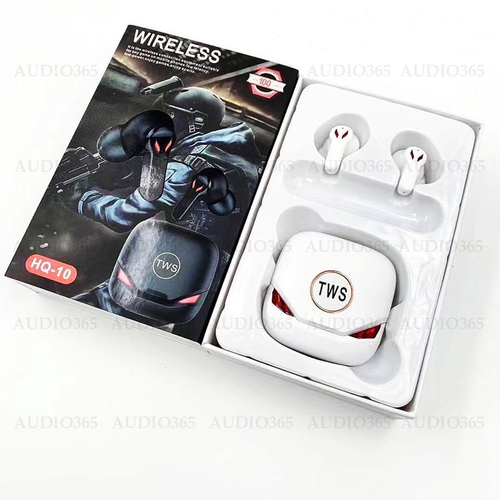 Tai nghe bluetooth gaming Audio365 HQ-10 5.0 TWS, Bass mạnh mẽ, độ trễ thấp, Pin trâu: - Đây là mẫu tai nghe chuyên gaming cho độ trễ cực thấp khi chơi game - Thiết kế đèn led ở tai nghe và dock sạc độc đáo mang đậm phong cách game thủ - Âm bass mạnh mẽ cho trải nghiệ