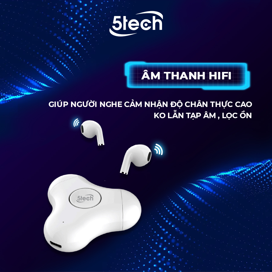 Tai nghe bluetooth , tai nghe không dây 5TECH 5T226 hàng chính hãng chống nước , pin trâu tích hợp con xoay 3 cánh giúp xả stress , giảm căng thẳng mệt mỏi
