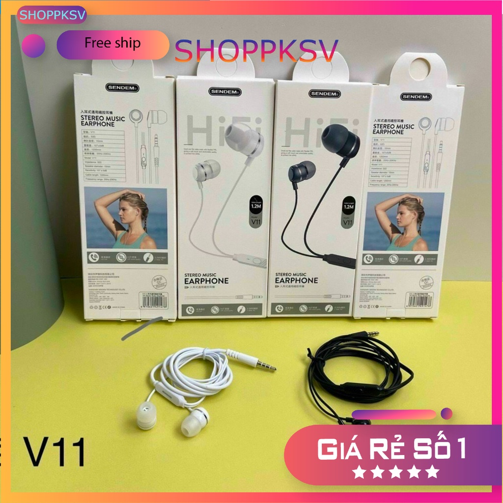 Tai nghe ip sendem chân 3.5 mm V11 tai chống ồn bịt nút cao su.