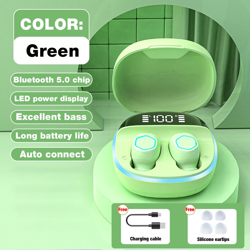 Tai Nghe Nhét Tai Không Dây Kết Nối Bluetooth Bluetooth 5.1 TWS A69 Âm Thanh Siêu Trầm Tai Nghe Không Dây Cảm Ứng: Tai Nghe Nhét Tai Không Dây Kết Nối Bluetooth Bluetooth 5.1 TWS M13 Âm Thanh Siêu Trầm Thông tin sản phẩm: 1. Chế độ kép: Chế độ chơi game/Chế độ nghe nhạc 2. Tai nghe chơi game có độ trễ thấp 50ms 3.Chip Airoha hàng đầu 4. Âm thanh nổi HIFI 5. Loa lớn 14mm, siêu trầm 10D 6. Kiểm soát âm lượng 7. Chống nước IPX5 8. Thời gian phát nhạc 5-6 giờ 9. Micrô HD 10. Chất lượng âm thanh / âm trầm cải thiện 11. Tự động bật / tắt nguồn 12. Bài hát trước, bài hát tiếp theo 13. Gọi Siri - Trợ lý giọng nói Xuất xứ: China Gói hàng bao gồm: 1 * Tai nghe Bluetooth 5.1 TWS A69 1 * Sạc giao diện kép Type-C 3 * Cặp tai nghe 1 * Hướng dẫn sử dụng