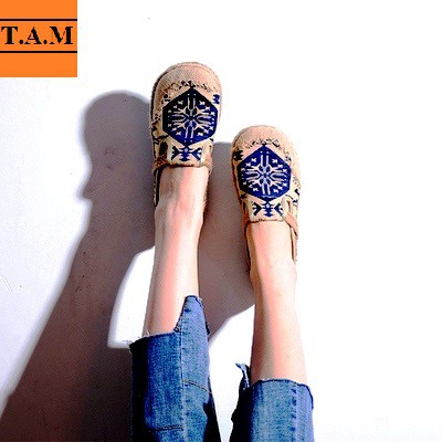 Giày thổ cẩm TAM07 Chất liệu bề mặt: Vải thổ cẩm Chất liệu đế: Cao su cao 1.5cm viền cói Lót giày: Lót cói êm ái Giày có thể Giặt chà bình thường, nên chà nhẹ nhàng và phơi khô sau khi giặt, tránh ngâm nước quá lâu. - Nếu giặt bằng máy giặt hãy bỏ trong túi lưới -