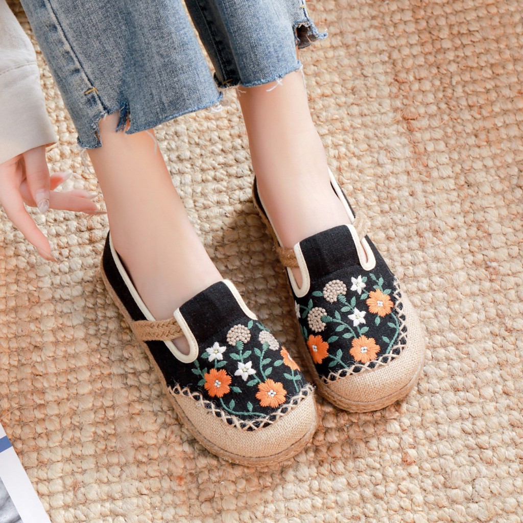 TAM11 giày thêu hoa đế cói