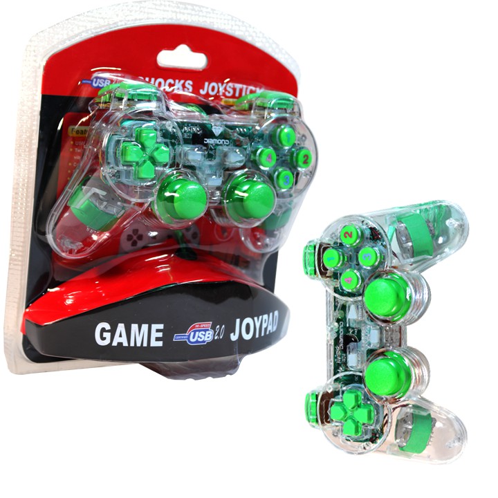 Tay cầm chơi game cho PC đơn rung đèn led XANH cổng USB