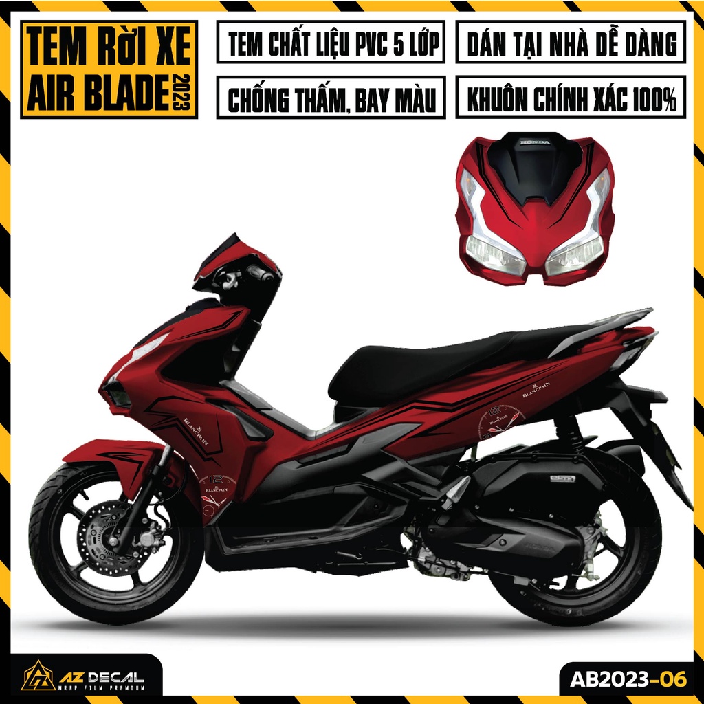 * THÔNG TIN SẢN PHẨM TEM RỜI XE AIR BLADE 2023 - Chất liệu decal PVC chống thấm nước, chống phai màu - Bám dính chắc chắn, cắt khuôn sẵn dễ dán, bóc tem không ảnh hưởng sơn xe - Quý khách vui lòng chọn màu nền tem phù hợp với màu sơn xe như ảnh minh họa - Áp dụng cho