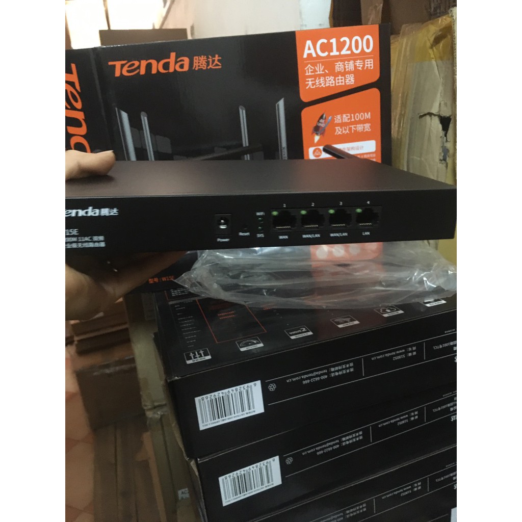 Tenda W15E là sản phẩm Router Wifi vừa được hãng Tenda ra mắt phục vụ doanh nghiệp vừa và nhỏ với tốc độ cao hỗ trợ 2 băng tần 2.4Ghz/5Ghz chuẩn 802.11b/g/n/ac Wave 2 1200Mbps Khả năng phát sóng mạnh mẽ với 4 anten 5dBi. Dịch vụ VPN IPsec / PPTP / L2TP. Với sức chịu tải tối đa 30 user trên cả 2 băng tần. Hỗ trợ bảo mật WPA-PSK/WPA2-PSK, WPA/WPA2, Mac Filter, Hẹn giờ tắt mở wifi,... Kiểm soát băng thông thông minh, cấp quyền truy cập USER GUEST giới hạn user sử dụng. Tenda W15E có 3 port WAN (RJ45 10/100/1000 Mbps) hỗ trợ cân bằng tải và 1 port LAN (RJ45 10/100/1000Mbps). Giao diện cài đặt của Tenda W15E rất trực quan và dễ sử dụng. Ngoài ra còn hỗ trợ ứng dụng trên điện thoại.
