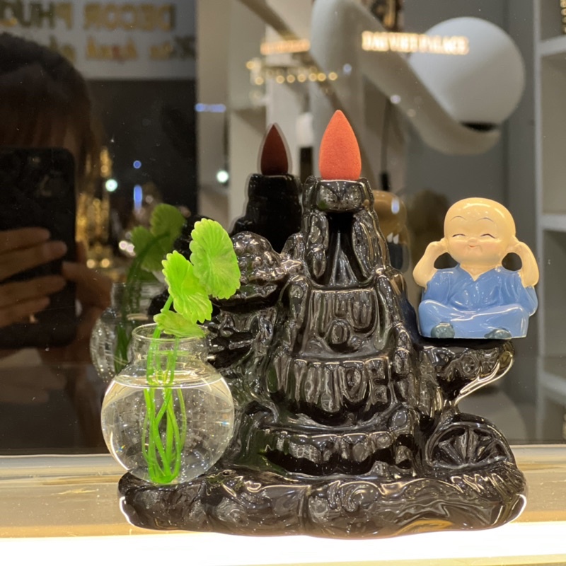 Thác khói trầm hương để bàn + lá sen thác chú tiểu.