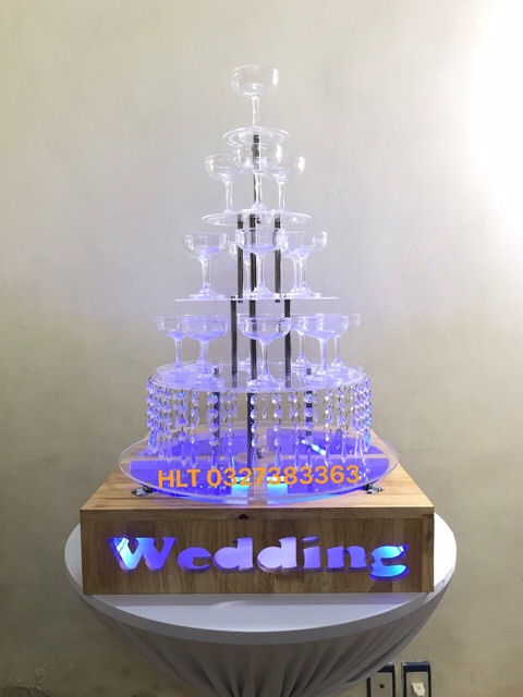Đồ Cưới Hoàng Long Xin Gửi Tới Quý Khách Hàng Sản Phẩm Mẫu Tháp Ly TL-2020 Đây là mẫu tháp ly có mã sản phẩm là TL-2020 với thiết kế sang trọng , đơn giản mà vẫn dữ được nét sang trọng và ý nghĩa của việc rót ly giao môi trong ngày cưới Mẫu Tháp Ly TL-2020 phần đế được sử dụng bằng chất gỗ liền khối có độ dầy là 1,5 phân , có độ phủ và đánh bóng phía ngoài đế , Mẫu tháp ly có khắc thêm chứ Wedding để trang trí và dễ nhận biết phần mặt phải khi nhân viên hoặc người sử dụng dễ dàng bầy trang trí , Tiếp theo là phần mô tơ được sử dụng bằng mô tơ nhập khẩu có sức chịu đựng và độ quay bền bỉ tránh cháy , khi khách hàng sử dụng Phần led dưới đế tháp ly là phần cực kỳ quan trọng , nó giúp người sử dụng có thể điều chỉnh tông mầu độc lập , hoặc chạy auto cho phần led mà cô dâu chú rể mong muốn - Phần tầng bằng mica chia da thành 5 tầng và được sử dụng bằng mica trong suốt tạo da một khối tháp ly tinh tế và sang trọng , tầng thứ 2 có 40 dây pha lê trang trí cho phần đáy tạo nên một bộ tháp ly với vẻ đẹp sang trọng trong ngày cưới - Từ tầng thứ 3 chở lên được xếp với 18 ly nhựa liền đế trống vỡ và tầng trên cùng được xếp với 1 ly ngọn để rót rượu từ đây chẩy xuống , phần này chúng tôi đưa vào 1 ly nhựa để tránh rơi đổ trong khi sử dụng , - Tiếp theo không thể thiếu phần trụ để tạo da một kết cấu cho cả bộ tháp ly TL-2020 này , nó được làm bằng inox 304 trống rỉ và phần ốc được bao bọc bởi inox 304 luôn cho phần nắp được tỉ mỉ và tinh tế hơn - Mọi thắc mắc xin liên hệ : 0327383363 - 0941486135