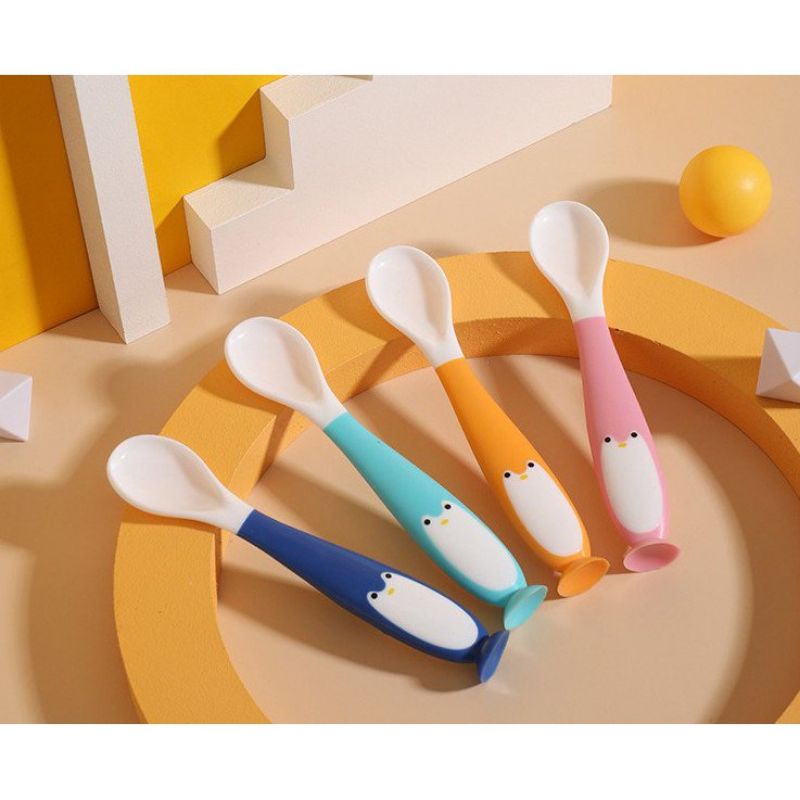 Thìa Ăn Dặm Nhựa Uốn Dẻo Xoay 360 Độ Hình Chim Cánh Cụt