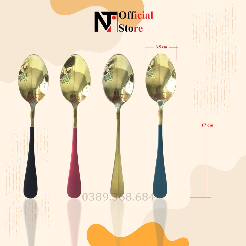 Thìa dĩa ăn cơm mạ vàng, chất liệu inox, cán dài nhiều màu - NT Store