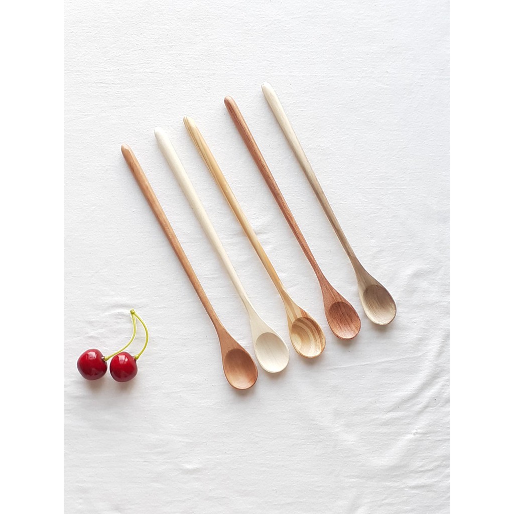 Thìa gỗ khuấy cafe, sinh tố cán dài - 5 loại gỗ