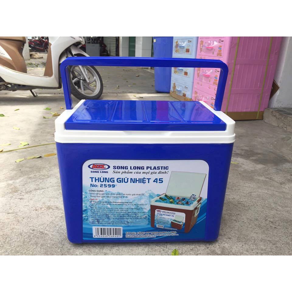 Thùng đá giữ nhiệt Song Long 45L Làm từ nhựa cao cấp, bền đẹp, giữ nhiệt tốt KT: 54 x 35.5 x 40.5 cm Màu sắc: Xanh dương - Đỏ - Vàng Có tay xách tiện lợi, chắc chắn Chất liệu nhựa PP cho khả năng chống lão hóa tố. Nhựa bóng, vệ sinh dễ dàng Khả năng giữ nhiệt tốt. Sản