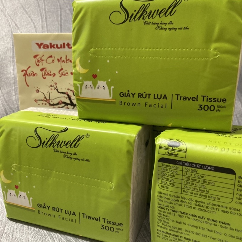 Silkwell là thương hiệu độc quyền của Cty TNHH TMSX khăn giấy Trung Thành Với hơn 15 năm hoạt động thị trường, Silkwell đã từng bước khẳng định được vị trí nhãn hàng Silkwell trên thị trường bán lẻ, tòa nhà và lớn nhất là hầu hết các siêu thị lớn nhỏ trên toàn quốc: Vinmart, Aeon, Lotte, Tmart, Thành Đô..... THÔNG TIN CHI TIẾT SẢN PHẨM - Thành phần: 100% bột giấy nguyên chất,phôi nhập khẩu INDO, an toàn cho mọi loại da - Trọng lượng: 100g/gói - 100 tờ x 3 lớp - Định lượng: 13 ± 1 gsm - Kích thươc: 120mm x 185 mm - Sản xuất tại: Việt Nam - Hạn sử dụng: 3 năm kể từ ngày sản xuất - HDSD: Được dùng để lau mặt, lau tay, các vết bẩn - Giấy nguyên chất không dùng chất tẩy trắng Cam kết hàng chính hãng 100%