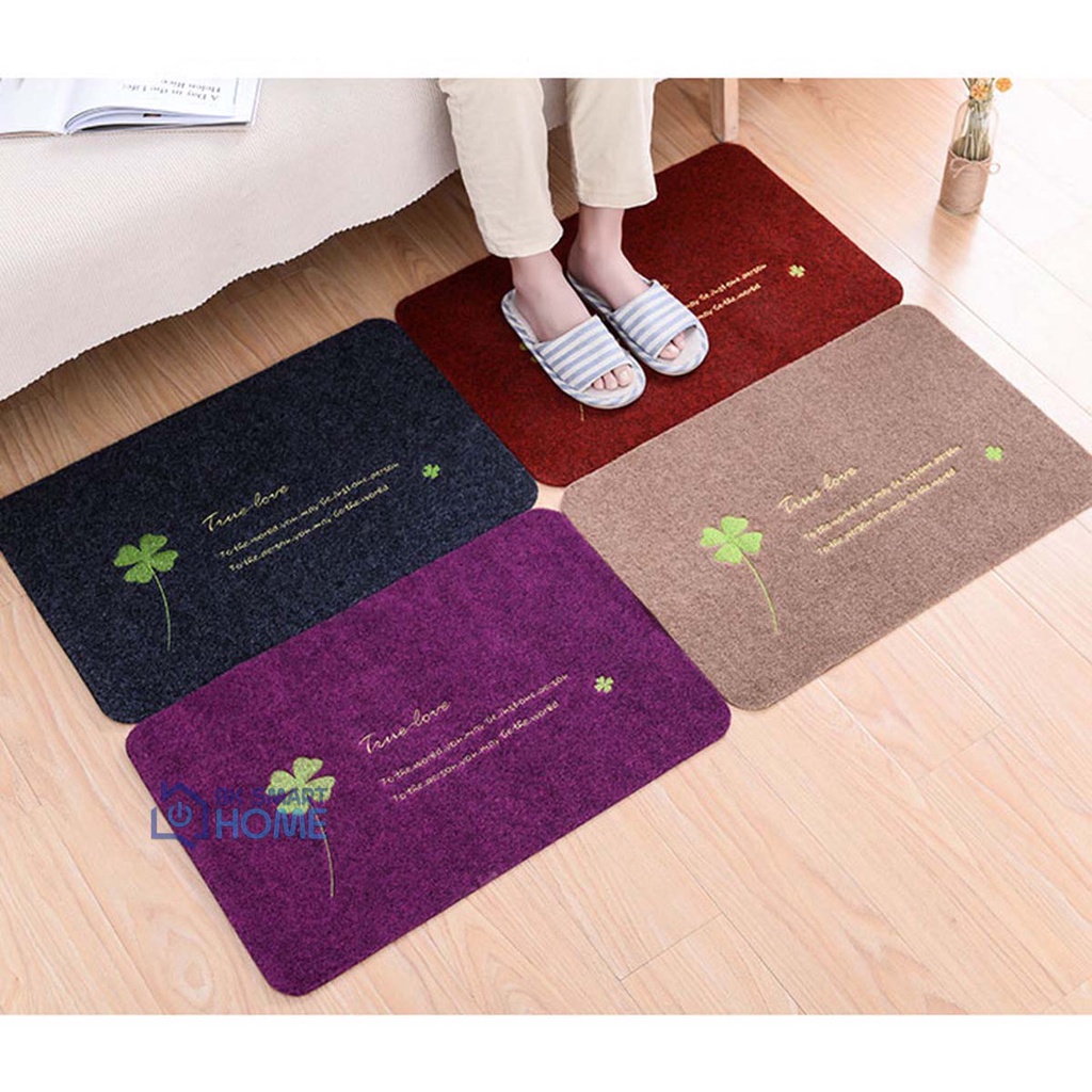 Thảm Lau Chân Thêu Hình Cỏ 4 Lá May Mắn - Thảm Chùi Chân Cao Cấp Thấm Hút Tốt