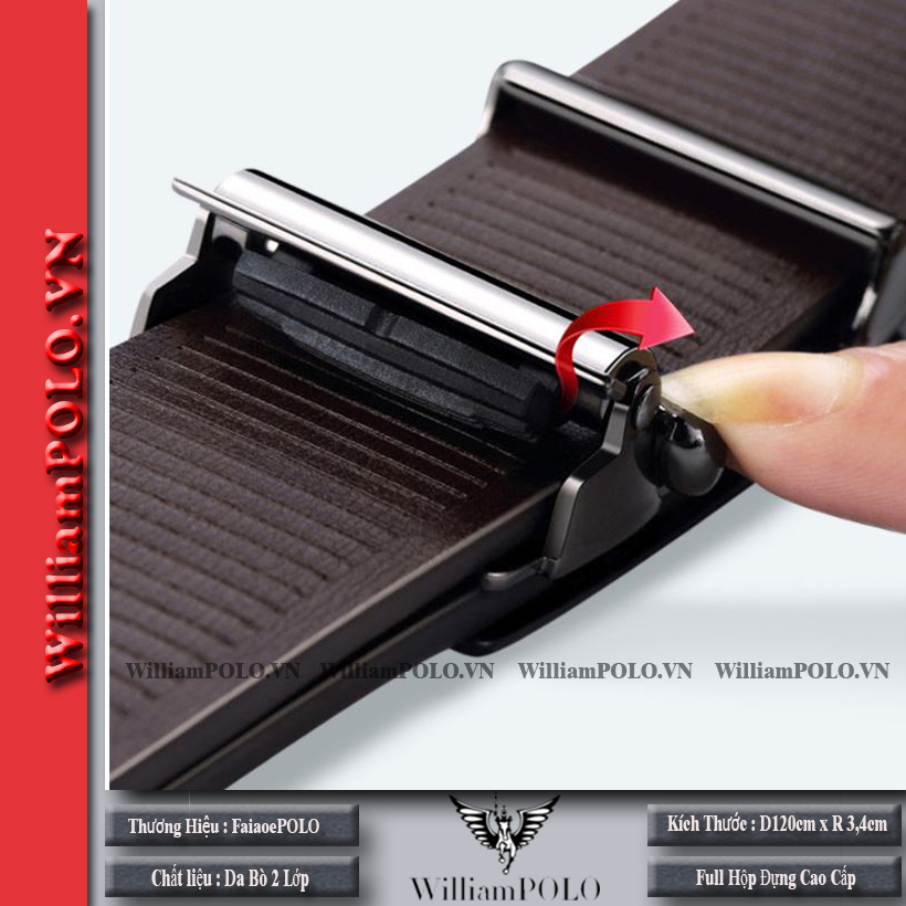 Thắt lưng nam , dây nịt nam cao cấp FaiaoePOLO Full hộp đựngThương hiệu : FaiaoePOLOMặt hợp kim cao cấp - dùng khóa tự độngKích thước 3.3cm x 120cmMàu sắc: Vang - bacFull hộp đựng - Khách hàng cần túi...
