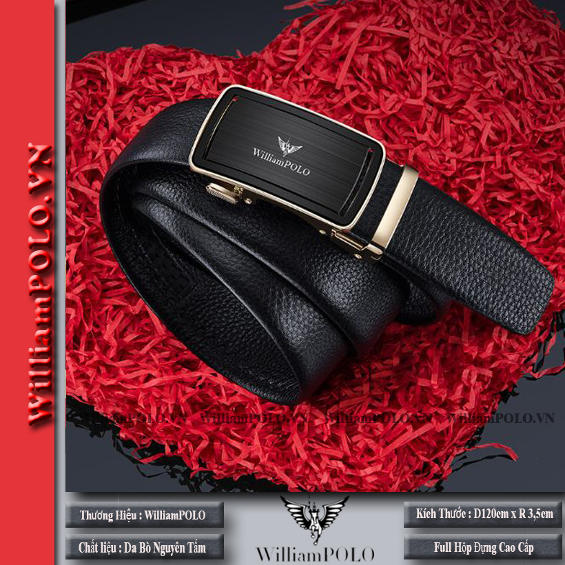 Thắt lưng nam , dây nịt nam da bò WilliamPOLO Full hộp đựng cao cấp - V14