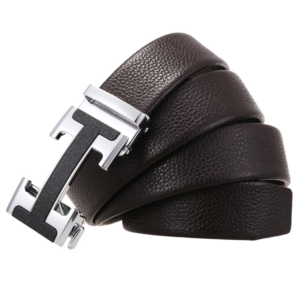 -Thắt Lưng Nam Da Bò Cao Cấp, Màu Đen/Nâu, Khóa Tự Động Chữ H
