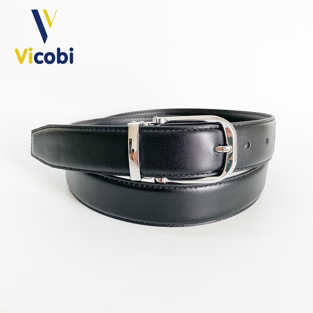 Thắt lưng Nam Da Bò Vicobi TLB1, dây lưng khóa kim Bạc Tròn, kết hợp quần vải, Made in Viet Nam
