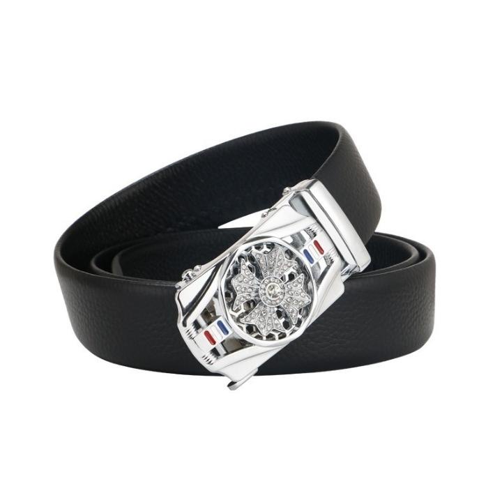 Thắt lưng nam da cao cấp, mặt đính đá xoay 360, khóa tự động mạ kim sang trọng TL23
