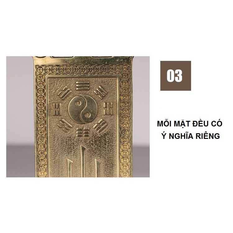 ROY AN SHOP ----------------------------------------------------------------- THÔNG TIN SẢN PHẨM: - Tên sản phẩm: Thẻ đồng Thiên quan tứ phúc - Kích thước: 18.8 x 5.5 x 0.2 (cm) - Màu sắc: Vàng - Chất liệu: Đồng thau đúc nguyên khối - Công dụng: Nhà bạn và nhà hàng xóm có cửa chính đối diện nhau? Theo phong thủy thì điều này là không tốt và để hóa giải điều này thì nhiều nhà sẽ nghĩ tới phương án treo gương bát quái để hóa giải. Tuy nhiên nếu cả hai nhà đều treo gương bát quái thì sẽ xảy ra tình trạng luôn đối xung giữa hai nhà. Do vậy, Bạn hãy treo Thẻ đồng THIÊN QUAN TỨ PHÚC này trước cửa nhà mình. Ý nghĩa của từ này là: "Quan Trời Ban Lộc". Khi treo thẻ đồng này thì cả hai gia đình sẽ đều gặp MAY MẮN, PHÚC LÀNH sẽ tới cả 2 nhà mà không bị tình trạng đối xung giữa hai bên. Nếu bạn vẫn còn thắc mắc về công dụng của sản phẩm hoặc nhà bạn có những đặc trưng riêng hoặc cách sử dụng thẻ bài này thì đừng ngại, hãy nhắn tin cho shop nhé. -------------------------------------------------------------------------------- #royan888shop