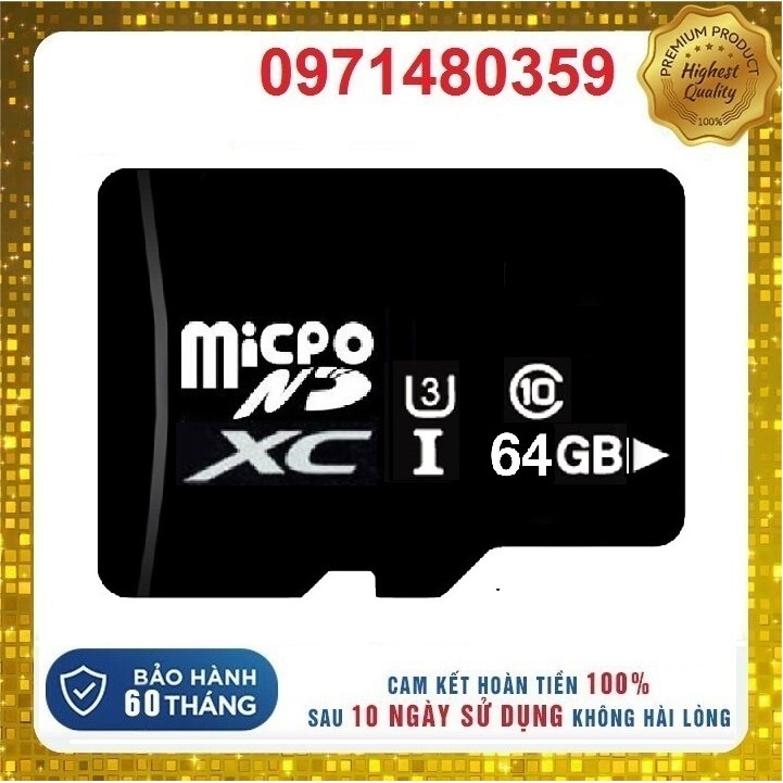 Thẻ nhớ MicroSD Class 10 u3 Tốc độ cao (Đen) 32GB/64GB MÔ TẢ SẢN PHẨM =========================== Thẻ Nhớ đen MicroSD 32GB, 64GB ☼ Thẻ nhớ chuyên dụng camera, điện thoại, Smartphone, các thiết bị điện tử ☼ Tốc đô Đọc: 60-80MB/s - Ghi 20-30MB/s ** ☼ Bảo hành 24 tháng bằng mã sản phẩm phía sau thẻ ☼ Không bảo hành với sản phẩm bị gãy, trầy xước, biến dạng =========================== * * Tốc độ dựa trên môi trường thử nghiêm nên tốc độ truyền sẽ khác nhau tùy theo các điều kiện phần cứng / phần mềm khác nhau, do đó dữ liệu chỉ có thể sử dụng để tham khảo cơ bản. * * 1GB = 1.000.000.000 Bytes --> Trong hệ điều hành, nó sẽ được hiển thị là 1.000.000.000 Bytes / 1024/1024/1024 = 0.93GB 1Gb máy tính chỉ nhận được 0.93Gb Thẻ nhớ 64G, 32G - tốc độ cao chuyện dụng cho Camera IP wifi, Smartphone, loa đài, BH 2 năm 1 đổi 1 Đặc điểm nổi bật: - Thiết kế nhỏ gọn - Chuẩn Class10 tốc độ cao - dung lượng thực tế nằm khoảng ~29GB(32GB) ~58GB(64GB) theo nhà sản xuất ( các bạn có thể google '' vì sao thẻ nhớ không đủ dung lượng ") - Thẻ cam kết đủ dung lượng dùng tốt cho tất cả các sản phẩm Điện thoại, Camera ip, Yoosee, máy tính bảng, loa, đài... - Cam kết sản phẩm đúng như mô tả - Hoàn tiền 100% nếu không đúng cam kết - Bảo hành 2 năm =========================== MỌI CHI TIẾT LIÊN HỆ: ☎ Hotline: 0971.480.359 📩 Email: thanhhiep2404@gmail.com