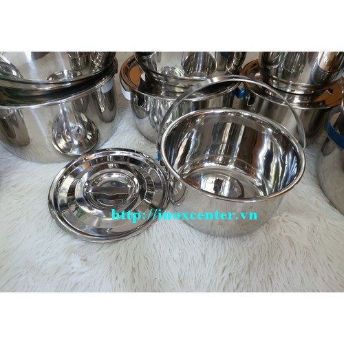 THỐ INOX CÓ QUAI - Được làm bằng chất liệu inox cao cấp. - Thố dùng trộn, đựng thức ăn, thạch trà sữa ,topping,.... - Dùng nhiều năm vẫn sáng bóng, làm bừng sáng căn bếp nhà bạn - Màu bạc sang trọng, tạo sự ngon miệng trong từng món ăn - Đa dạng kích cỡ cho bạn dễ dà