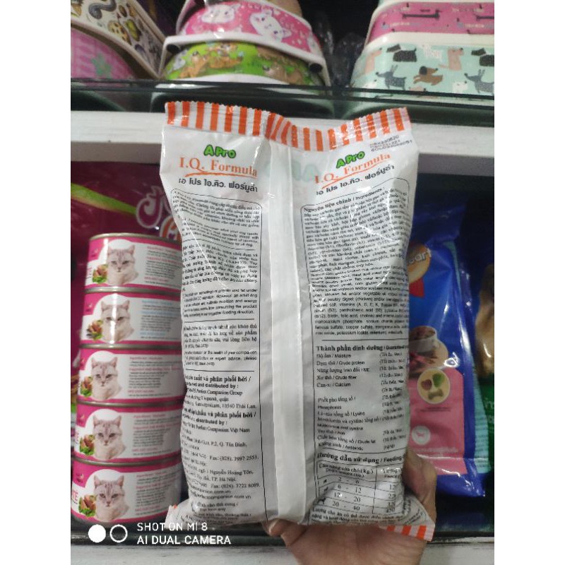 Thức ăn hạt cho chó lớn A Pro IQ. Formula cung cấp những điều mà chó của bạn cần. Chúng tôi phát triển công thức đặc biệt pha trộn với giá trị dinh dưỡng từ hỗn hợp cân bằng của các vitami, khoáng chất và chất dinh dưỡng thiết yếu khác cho tất cả các giống chó. A Pro I.Q. Formula provides what your dog needs. We developed a recipe that specially mixed with nutritional value from a balanced blend of vitamins, minerals, and other essentials nutrient for all dog. Sản phẩm này có tỉ lệ phần trăm chất đạm và | chất béo thấp hơn tiêu chuẩn của Hiệp hội Thức ăn Chăn nuôi Hoa Kỳ (AAFCO). Tuy nhiên, chó trưởng thành sẽ nhận được múc dinh dưỡng và năng lượng đầy đủ và phù hợp với nhu cầu cơ bản của chúng từ việc sử dụng ac ăn theo đúng hướng dẫn cho ăn của chúng Nguyên liệu chính / Ingredients Bắp xay và/hoặc gạo tấm và/hoặc bột gạo và/hoặc bột lúa mì và/hoặc bột thịt và phụ phẩm từ thịt gà và/hoặc gia cầm và/hoặc bột cá và/hoặc trứng sấy khô nguyên quả và/hoặc men bia sấy khô, bột bắp gluten và/hoặc đạm đậu nành và/hoặc đậu nành giàu chất béo và/hoặc bột đậu nành, cám gạo và/hoặc cám lúa mì, mỡ gà và/hoặc dầu thực vật, men tiêu hóa gà (gà) và/hoặc men tiêu hóa gia cầm (gà) và/hoặc men tiêu hóa gan (gan gà), muối iốt , các vitamin (a, d, e, k, thiamine (b1), riboflavin (b2), niacin (63), axít panthothenic (b5), pyridoxine (b6), cobalamin (b12), biotin, axit folic, colin) và các khoáng chất (can-xi cacbonat, mono can-xi photphat, natri clorua, kali clorua, sắt sun-phát, đồng sun-phát, ôxít mangan, coban sun-phát, ôxít kẽm, kali iođua, selen) các chất chống oxy hóa. Ground corn and/or broken rice and/or rice flour and/or wheat flour and/or cassava flour, meat and meat by - products from chicken and/or poultry and/or fish meal and/or dried whole egg brewers dried yeast, corn gluten meal and/or soybean and/or full fat soybean and/or soybean meal, rice bran wheat bran, chicken fat and/or vegetable oll, chicken d (chick and/or poultry digest (chicken) and/or liver digest ver chi iodized salt, vitamins (A, D, E, K, thiamine (81), ribolla niacin (B3), panthothenic acid (85), pyridoxine (Bei (B12), biotin, folic acid, choline) and minerals (og monocalcium phosphate, sodium chloride, ferrous sulfate, copper sulfate, magnesium p zinc oxide, potassium iodide, selenium), antioxidant Suất xứ: Thái Lan Nsx, hsd: Xem trên bao bì (date mới)