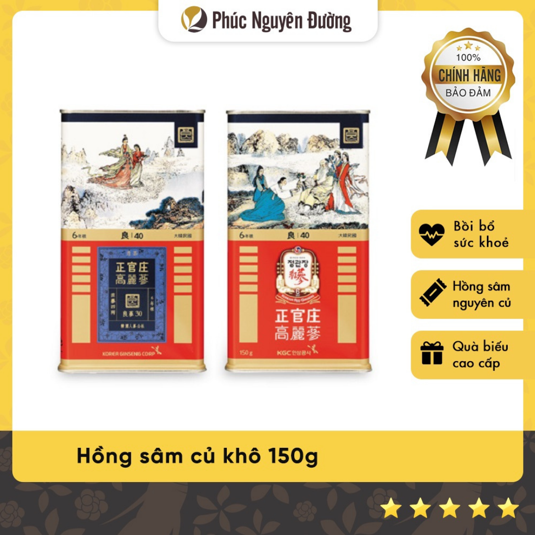 Hồng sâm khô hộp thiếc Hàn Quốc 150g,12củ,40PCS, 6 năm tuổi Hàn Quốc KGC - Hỗ trợ bồi bổ nguyên khí, tăng cường sinh lực, tăng sự tỉnh táo· Thành phần: 100% hồng sâm Hàn Quốc 6 năm...