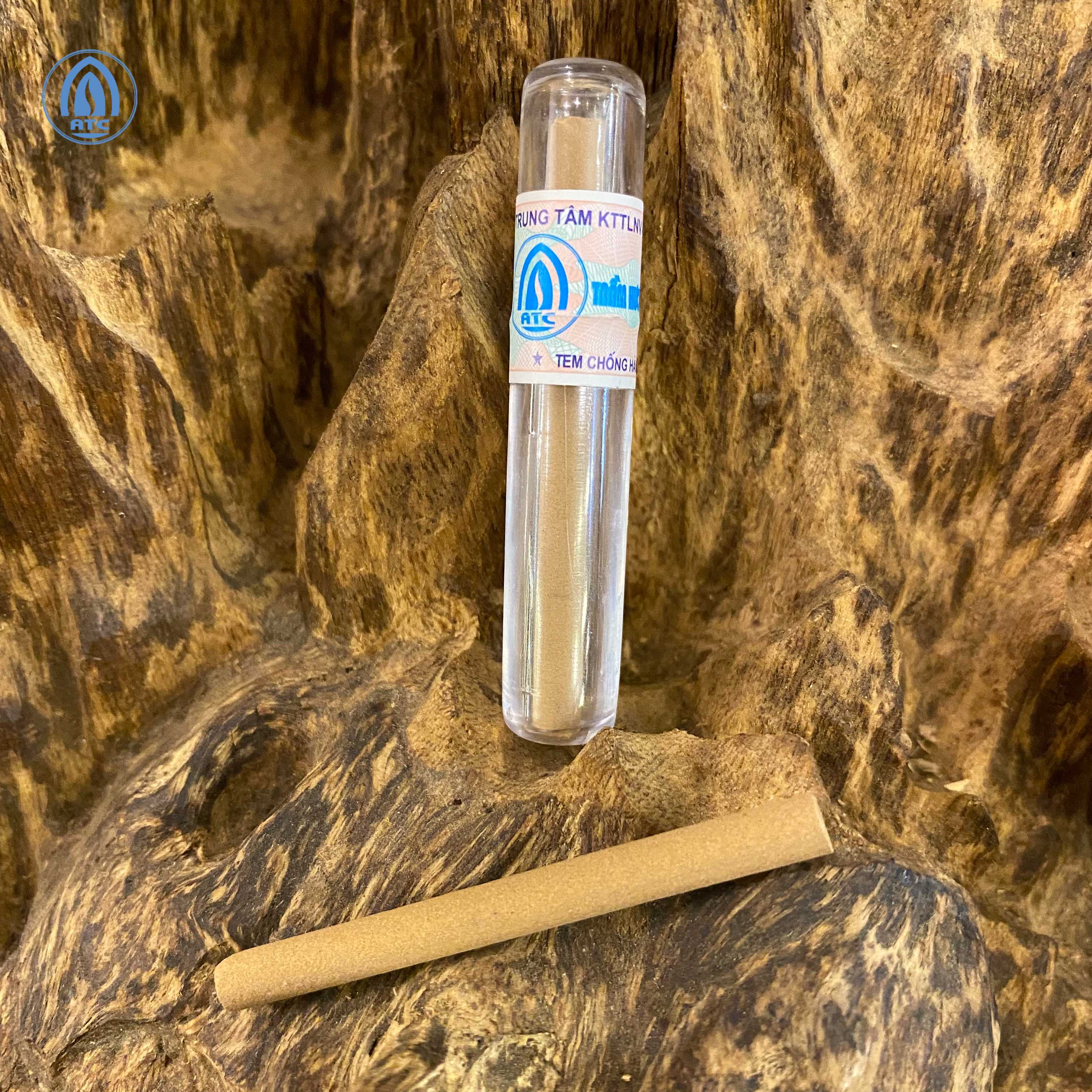 Bộ thưởng trầm ATC Phúc Lộc Thọ của Trầm Hương Khánh Hòa được làm bằng gỗ hương quý hiếm. Hoa văn họa tiết đơn giản và sang trọng. Họa tiết đồng xu trên mặt hộp thưởng trầm phù hợp với tất cả mọi người, không phân biệt giới tính, độ tuổi, tôn giáo,..., đồng thời giúp tạo hình khói trầm đẹp. Được thiết kế theo hình dạng hộp chữ nhật dài, dành riêng cho nhang trầm không tăm 18cm của Trầm Hương Khánh Hòa, có lớp chống cháy lót phía đáy hộp giúp giữ an toàn và giữ trọn vẹn mùi thơm của khói trầm. Để sử dụng bộ thưởng trầm, mời quý khách thực hiện theo các bước đơn giản sau: Bước 1: Quý khách dùng tay tách nhẹ nhàng phần nắp và khay đế của hộp thưởng trầm. Hộp thưởng trầm ATC Phúc Lộc Thọ được thiết kế thông minh, có nam châm hút giữ nắp hộp để giúp hộp kín ở mức cần thiết, đảm bảo thẩm mỹ và dễ dàng mở với một lực vừa đủ. Sau khi mở nắp hộp, quý khách nhẹ nhàng đặt hộp xuống mặt bàn, để hộp ở trạng thái mở nắp để sẵn sàng đựng thanh trầm. Bước 2: Quý khách mở nhẹ nhàng hộp đựng thanh trầm và lấy một thanh trầm ra. Quý khách lưu ý, thanh trầm không tăm của Trầm Hương Khánh Hòa được làm từ bột trầm hương tự nhiên, không chứa các hóa chất phụ gia nên cần phải nhẹ nhàng, tránh làm gãy thanh trầm. Sau khi lấy thanh trầm, quý khách thực hiện đốt một đầu của thanh trầm. Dùng bật lửa đốt đầu thanh trầm đến khi nhìn thấy đầu thanh trầm đã bắt lửa thì dừng lại. Nếu đầu thanh trầm vẫn tiếp tục cháy có ngọn lửa, quý khách dùng tay quạt nhẹ nhàng để tắt ngọn lửa. Quý khách tiếp tục quan sát đầu thanh trầm được đốt trong khoảng 3 giây, nếu thấy vẫn tiếp tục cháy và có khói là được. Bước 3: Sau khi thanh trầm đã bắt lửa và có khói, quý khách nhẹ nhàng đặt thanh trầm vào hộp thưởng trầm. Quý khách lưu ý đặt toàn bộ phần thanh trầm gọn trong hộp, thanh trầm hoàn toàn nằm trong phần lót chống cháy (màu đen) của hộp thưởng trầm để tránh cháy phần gỗ của hộp thưởng trầm. Bước 4 : Quý khách nhẹ nhàng dùng tay đậy nắp hộp thưởng trầm lại, thư giãn và thưởng thức sự tuyệt vời của Trầm Hương Khánh Hòa mang lại. Thanh trầm hương không tăm 18cm của ATC Trầm Hương Khánh Hòa sẽ cháy trong khoảng từ 20 đến 30 phút ở điều kiện bình thường, thời gian cháy có thể thay đổi theo độ ẩm không khí, lượng gió lưu thông. Kết hợp với nghe nhạc nhẹ nhàng, âm lượng vừa phải sẽ giúp quý khách thư thái hơn. ATC Trầm Hương Khánh Hòa xin được cảm ơn quý khách.
