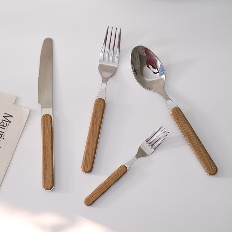 THANH LÍ Bộ dao, muỗng, nĩa bàn ăn inox cán gỗ cao cấp phong cách bàn ăn cổ điển, thìa cà phê, tráng miệng Woody