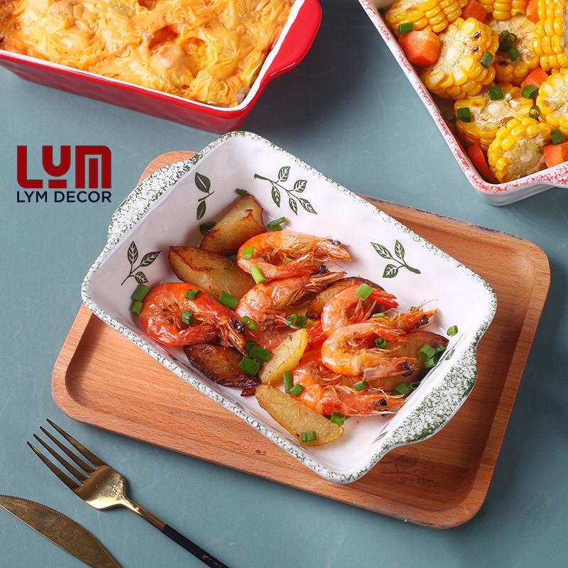 ❌THANH LÝ XẢ KHO❌ Khay nướng chữ nhật chanh vàng size vừa S22 - Chất sứ cao cấp không chì, hàng xuất Âu