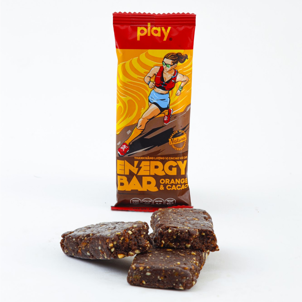 Thanh năng lượng PLAY phiên bản 2.0 là sản phẩm giúp bổ sung năng lượng cho người chơi thể thao, người có cường độ làm việc cao. Thanh dinh dưỡng chứa những dưỡng chất từ trái cây và các loại hạt giúp cung cấp dinh dưỡng cân bằng cho cơ thể. - Thanh energy giúp duy trì năng lượng lâu dài nhờ công thức giải phóng năng lượng đa tầng - Bánh năng lượng dễ sử dụng và dễ mang theo khi vận động - PLAY energy bar thuần chay, chạy mặn đều dùng được - Không thêm chất bảo quản hóa học, đường tinh luyện, hương liệu - Chứa muối giúp tránh tình trạng chuột rút do mất muối khoáng trong quá trình bài tiết mồ hôi lúc vận động. 🍃SỬ DỤNG THANH NĂNG LƯỢNG PLAY HIỆU QUẢ NHẤT KHI: Ăn bánh vào bữa sáng hoặc trước khi làm việc, luyện tập thể thao từ 30-45 phút. 🍃THÀNH PHẦN: - Vị macca & bơ đậu phộng: Bơ đậu phộng (21,4%), mạch nha, tinh bột khoai mì, hạt mắc ca (10%), yến mạch, đậu phộng, mật mía, bột đạm đậu nành, bột đậu phộng, cacao ngòi, bỏng gạo, chất xơ tiêu hóa, dầu thực vật, glycerol thực vật, chất nhũ hóa gốc đậu nành, chất điều chỉnh độ acid, muối, chiết xuất hương thảo. - Vị cam caocao: Hạt điều (21,5%), vỏ cam (10%), xoài, nho khô, bơ đậu phộng, bột cacao, tinh bột khoai mì, bột đạm đậu nành, mật mía, mạch nha, bỏng gạo, bơ cacao, chất xơ tiêu hóa, dầu thực vật, glycerol thực vật, chất nhũ hóa gốc đậu nành, chất điều chỉnh độ acid, muối, tinh dầu vỏ cam, chiết xuất hương thảo. - Vị trái cây & yến mạch: Hạt điều (23%), nam việt quất (15%), mơ (11,5%), nho khô (11,5%), yến mạch, tinh bột khoai mì, bột đạm đậu nành, mạch nha, mật mía, bơ đậu phộng, bỏng gạo, chất xơ tiêu hóa, dầu thực vật, glycerol thực vật, chất nhũ hóa gốc đậu nành, chất điều chỉnh độ acid, muối, chiết xuất hương thảo. 🍃THÔNG TIN SẢN PHẨM - Xuất xứ: Việt Nam - Khối lượng: 45g/thanh - Hạn sử dụng: 1 năm kể từ ngày sản xuất - Ngày sản xuất: in trên bao bì - Bảo quản: Bảo quản trong điều kiện mát và khô - Thông tin cảnh báo: Có chứa hạt điều, đậu phộng và đậu nành; có chứa gluten trong yến mạch
