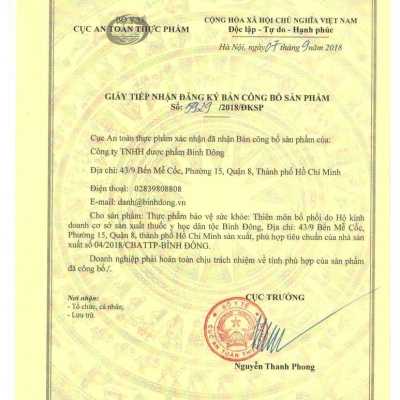 THÔNG TIN SẢN PHẨM *** THÀNH PHẦN THIÊN MÔN BỔ PHỔI : Chai 280ml Thiên môn đông 21g Bạc hà 14g Tỳ bà diệp 14g Trần bì 14g Dâu (vỏ hoặc rễ) 14g Cát cánh 12,6g