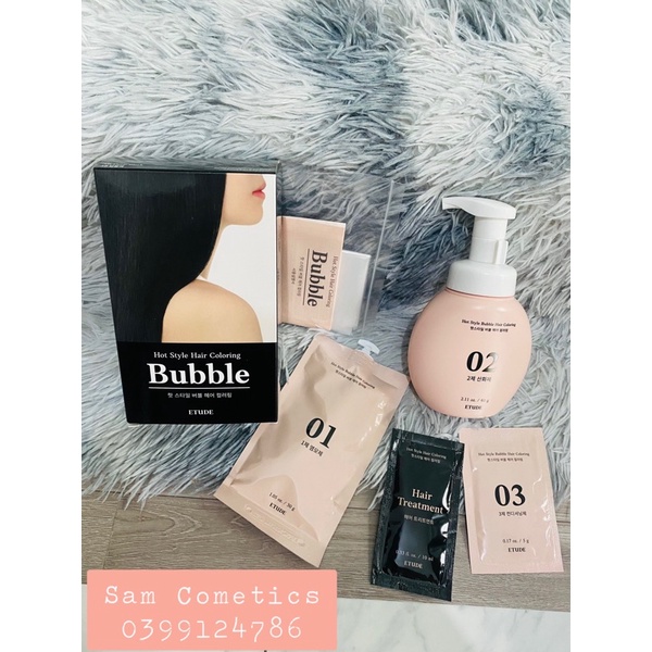 Dầu Gội Nhuộm Tóc Tạo Bọt Etude House Hot Style Bubble Hair Coloring Thương hiệu: Etude House Xuất xứ: Hàn Quốc Bộ sản phẩm nhuộm tóc thuốc nhuộm tóc Etude House Hot Style Hair Coloring Bubble được trang bị 5 món khá tiện lợi cho những bạn khi muốn tự trổ tài nhu