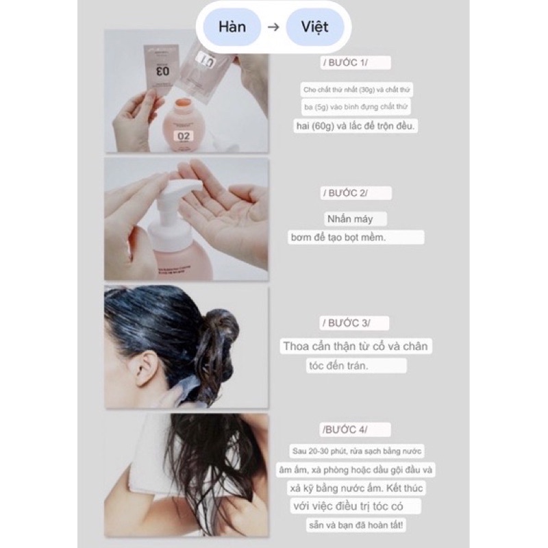 Dầu Gội Nhuộm Tóc Tạo Bọt Etude House Hot Style Bubble Hair Coloring Thương hiệu: Etude House Xuất xứ: Hàn Quốc Bộ sản phẩm nhuộm tóc thuốc nhuộm tóc Etude House Hot Style Hair Coloring Bubble được trang bị 5 món khá tiện lợi cho những bạn khi muốn tự trổ tài nhuộm tóc ngay tại nhà: - Gói thuốc nhuộm tóc. - Bình pha dung dịch nhuộm tóc (thuốc dạng vòi ấn và còn có cả nút chặn). - Tinh dầu dưỡng tóc giúp bổ sung thêm dưỡng chất sau quá trình nhuộm tóc. - Găng tay và áo choàng nilon dùng để khoác quanh cổ để thuốc nhuộm không làm dơ áo. - Một tờ giấy hướng dẫn sử dụng chi tiết. Bạn chỉ cần đổ chất tạo bọt và tạo màu vào bình xịt và lắc nhẹ là có thể xịt bọt ra và dùng bọt thoa lên đầu, giống hệt như cách bạn đang gội đầu. Không còn quá tốn thời gian và phải đi xa nữa, bạn có thể "biến đổi" ngay màu tóc ngay tại nhà với Dầu Gội Tóc Tạo Bọt Etude House Hot Style Bubble Hair Coloring với cách nhuộm độc đáo và không gây hại cho tóc. Được cải tiến từ những loại thuốc nhuộm dạng kem thông thường, Dầu Gội Nhuộm Tóc Tạo Bọt Etude House Hot Style Bubble Hair Coloring với những lớp bọt mịn sẽ giúp màu bám đều và thấm nhanh vào tóc, phủ được từ chân tóc đến ngọn tóc. Đặc biệt, dạng bọt bạn sẽ giúp bạn tiết kiệm được nhiều hơn so với dạng kem. Sản phẩm rất được giới trẻ ưa chuộng và nhận được nhiều đánh giá tốt vì các bước nhuộm cực kì đơn giản, chỉ như thao tác gội đầu thông thường và bạn chỉ mất từ 30-45 phút tại nhà. Sau khi gội, tóc vẫn giữ được độ mềm và màu sắc lên rất sinh động. HƯỚNG DẪN SỬ DỤNG - Đầu tiên mặc áo choàng và đeo găng tay vào để đảm bảo thuốc nhuộm không làm bẩn tay và quần áo. - Đổ tuýp thuốc nhuộm vào bình đựng dung dịch sau đó lắc đều tầm 5 phút sẽ thấy tạo thành đám bọt có màu nhuộm. - Nếu lắc quá nhẹ hay chưa đủ lâu thì nó chỉ ra bọt trắng thôi. Phải thành bọt màu nhuộm mới có tác dụng. - Xịt thuốc nhuộm ra và bắt đầu bôi đều lên tóc từ trong ra ngoài, từ phần ngọn tóc đến chân tóc (chừa phần chân tóc ra khoảng 1cm, vì phần này mau lên màu) rồi sau cùng nhuộm phần chân tóc. - Gom tóc cho gọn lại rồi dùng mũ chụp nilon (nếu có) và đợi 30-45 phút rồi gội sạch. - Lau cho tóc ráo nước rồi dùng gói dầu dưỡng tóc thoa đều lên tóc và chờ khoảng 5 phút sau xả lại tóc với nước lần cuối. Lưu ý bảo quản: - Một chai sử dụng cho tóc ngắn được 2 lần nhuộm, tóc ngang lưng được 1 lần, tóc dài tới eo thì phải cần 2 chai. - Thời gian lưu màu trên dưới 2 tháng tùy theo tình trạng tóc của bạn trước khi nhuộm: Tóc đen chưa nhuộm màu lên chuẩn và giữ lâu hơn tóc đã và đang có màu cũ. - Không để tóc dơ và rối trước khi nhuộm. - Không nên dưỡng tóc trước khi nhuộm. - Tránh ủ thuốc nhuộm quá lâu. - Tuyệt đối không sử dụng thuốc nhuộm cho lông mày hoặc lông mi. - Bảo quản nơi khô ráo thoáng mát. - Tránh ánh nắng trực tiếp. - Để xa tầm tay trẻ em. #thuocnhuomtoc #nhuộmtoc #bọtnhuomtoc #botbien #thuocnhuomtocdangbot #thuocnhuomtoctainha