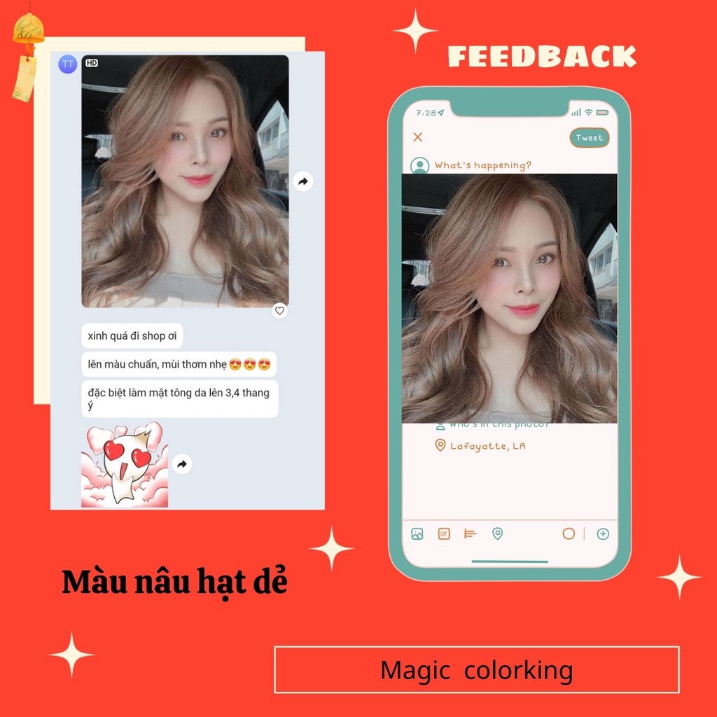 Thuốc nhuộm tóc Nâu hạt dẻ sữa không tẩy COLORKING 🔥 Nếu bạn đang tìm một màu lên từ base đen và tôn da thì đừng quên có 𝗡𝗔̂𝗨 𝗛𝗔̣𝗧 𝗗𝗘̉ 𝗦𝗨̛̃𝗔 nhé. Tone nâu đã vốn quen thuộc nhưng 𝗡𝗔̂𝗨 𝗛𝗔̣𝗧 𝗗𝗘̉ 𝗦𝗨̛̃𝗔 mang đến sự ngọt ngào tươi mới giúp bạn trở nên tươi sáng hơn. 🔥Kế