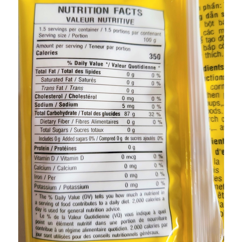• Thương hiệu: MIKKO • Nơi sản xuất: Việt Nam • Khối lượng: 150g • Thành phần: tinh bột bắp 100% • Hướng dẫn sử dụng: dùng chế biến món ăn. • Hạn sử dụng: 12 tháng kể từ ngày sản xuất • Bảo quản: nơi khô ráo thoáng mát