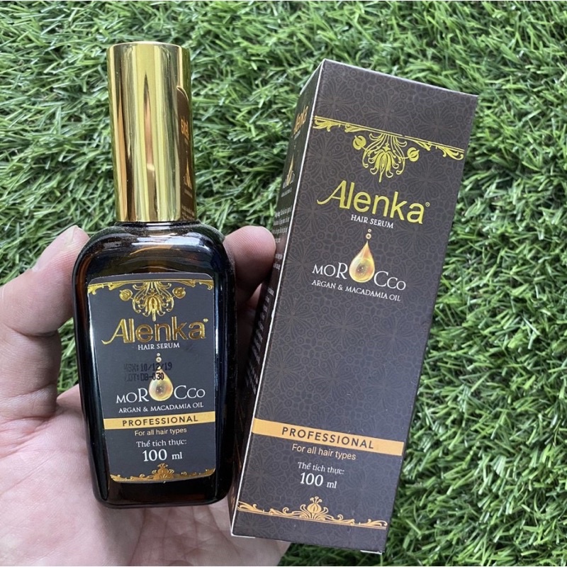 Tinh dầu dưỡng tóc uốn Alenka 100ml Tinh dầu dưỡng tóc argan và maca damia oil giúp phục hồi tóc hư tỏn, chẻ ngọn. đặc biệt giữ nếp tóc uốn lọn bung, mềm cách sử dụng: cho 1 lượng nhỏ vào lòng bàn tay rồi massaga nhẹ lên tóc bảo quản nơi khô ráo thoáng mát, cách xa ngọn lửa, tránh tiếp xúc với mắt
