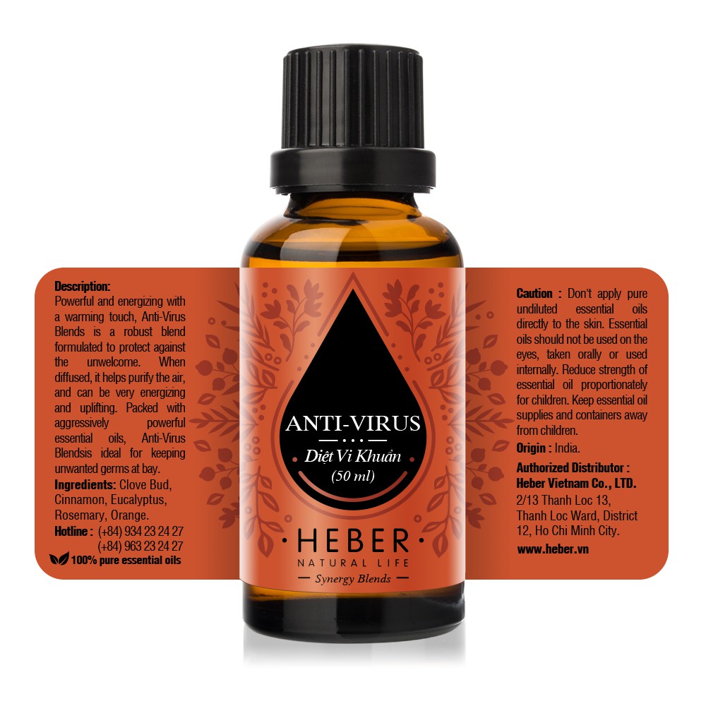 Tinh Dầu Diệt Vi Khuẩn Anti-Virus Blend Heber Natural Life, Cao Cấp Nhập Khẩu, Thiên Nhiên Nguyên Chất, 10ml/30ml/50ml