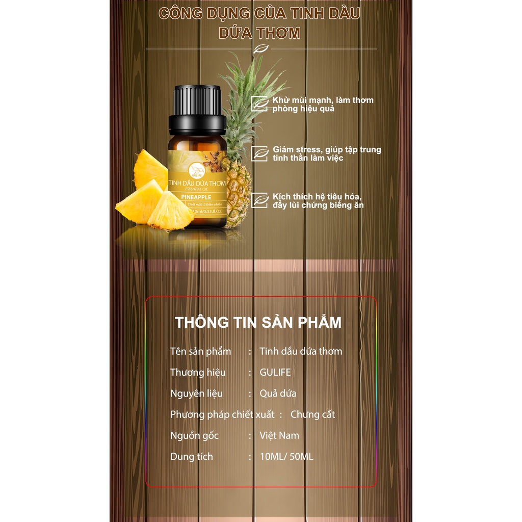 Tinh dầu thiên nhiên Dứa thơm nguyên chất Gulife Essential Oil, xông phòng làm thơm và thư giãn, kiểm định COA 10-50ml