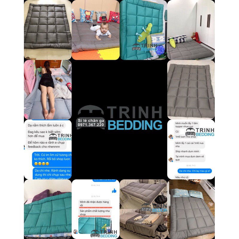 Topper Nệm Lông Vũ Màu Xám/ Xanh Lót Nệm Trải Sàn