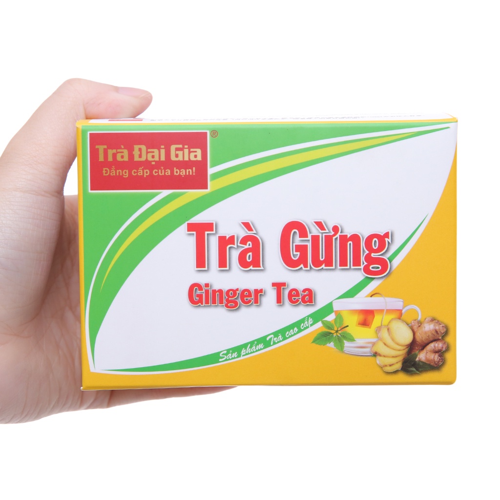 Thương hiệu: Trà Đại Gia Sản xuất tại: Thái Nguyên, Việt Nam, Trọng lượng tịnh: 200g Hạn sử dụng: 2 năm kể từ ngày sản xuất. Trà gừng là một thức uống quen thuộc chứa nhiều vitamin, khoáng chất và các chất chống oxy hóa rất tốt cho sức khỏe. Ngoài ra đây còn là loại trà có công dụng hỗ trợ khi bị cảm lạnh, chống buồn nôn, giảm đau bụng do ăn thức ăn, giúp tăng cường sức đề kháng và giữ ấm cho cơ thể. Sản phẩm Trà hòa tan gừng Trà Đại Gia được làm từ những lá trà tươi ngon nhất, kết hợp với bột gừng già, cho hương vị ngọt ngọt thanh và cay nồng. Cách pha chế trà cũng rất đơn giản, chỉ cần thêm một chút nước sôi và lượng đường tùy khẩu vị rồi thưởng thức, có thể uống nóng hoặc đá tùy theo sở thích của mỗi người. Note:Đây không phải là sản phẩm chức năng thay thế thuốc chữa bệnh.