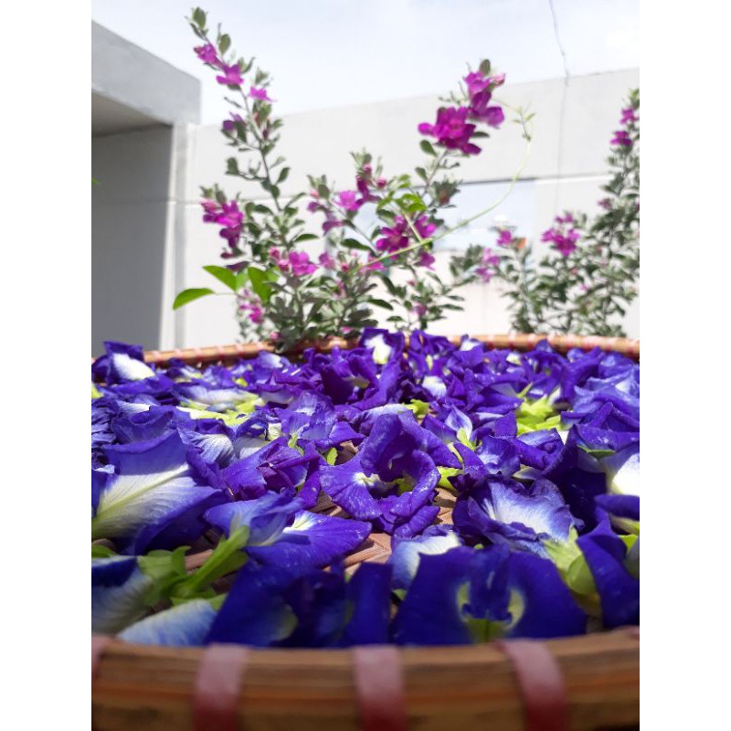 🍵Không như những sản phẩm trà khác, trà hoa đậu biếc từ khu vườn nhà Thanh được thu hoạch trực tiếp. Tự tay phơi khô, sấy lò nhằm giữ trọn vẹn màu xanh mới của cuốn bông và mùi thơm đậu đặc trưng của hoa đậu biếc. ✔Mỗi một mẻ trà hoa sau khi thành phẩm đều được bảo q