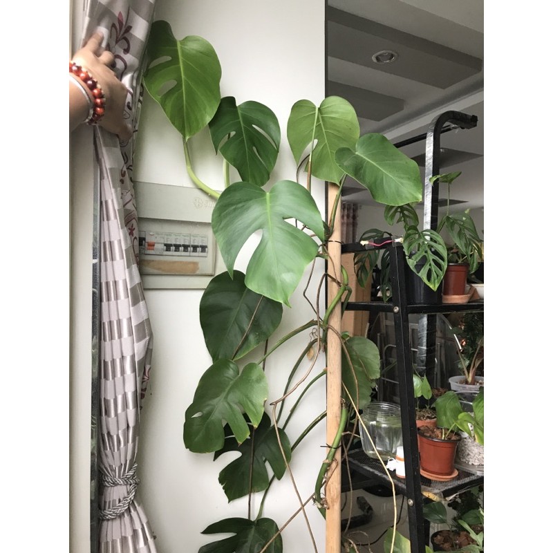 Ảnh đầu là cây mẹ. *Quý khách có nhu cầu xem cây trước có thể nhắn cho shop nhé!* Tên đầy đủ là Monstera Deliciosa var Borsigiana. Khác với dòng trầu bà Nam Mỹ lá xẻ thông thường (Monstera Deliciosa). Monstera Borsigiana là dòng thân leo, đốt thân sẽ dài hơn Monster