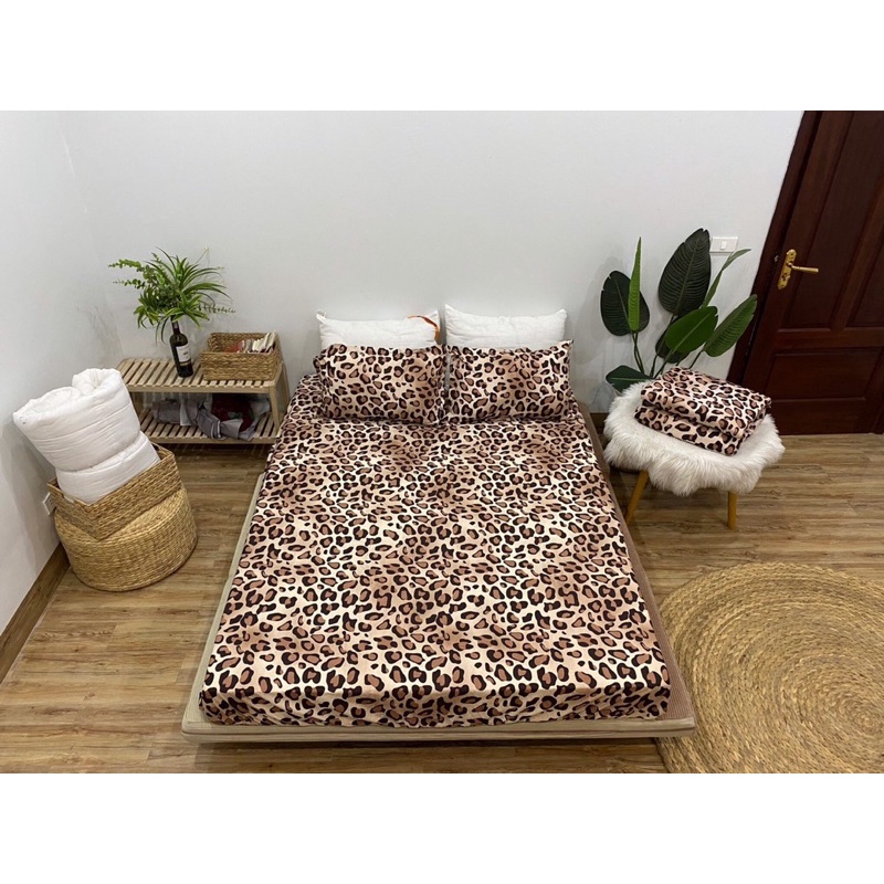 Trọn bộ 5 món chăn ga gối Poly mẫu da báo