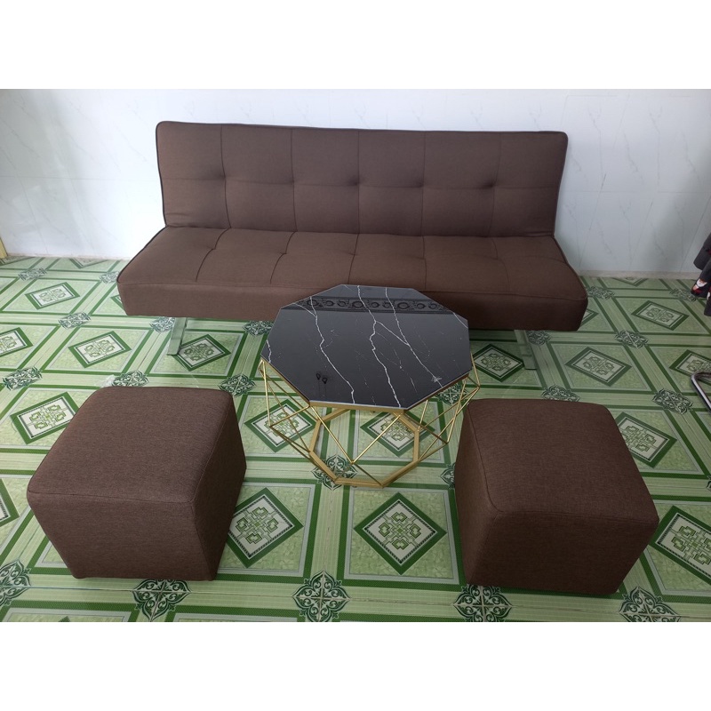 Chất liệu vải nỉ đẹp bền , đường may tỉ mĩ. Kich thước dài 1.7m ( bật ra thanh giường bề ngang 96 ) có thể ngồi được 3-4 người. Giá cả bộ 2.100.000 ( gồm 1 sofa 2 đôn và 1 bàn kim cương) Giao hàng và thanh toán tại nhà ở nội thành hcm , ngoài thành e thu thêm phụ ph