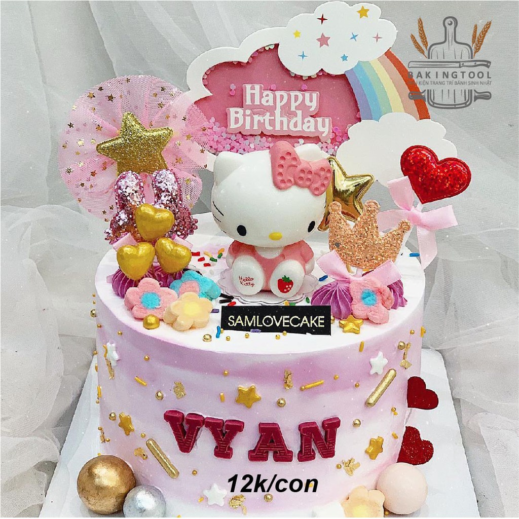 Trang trí mèo kitty hồng loại 1 cao cấp trang trí bánh